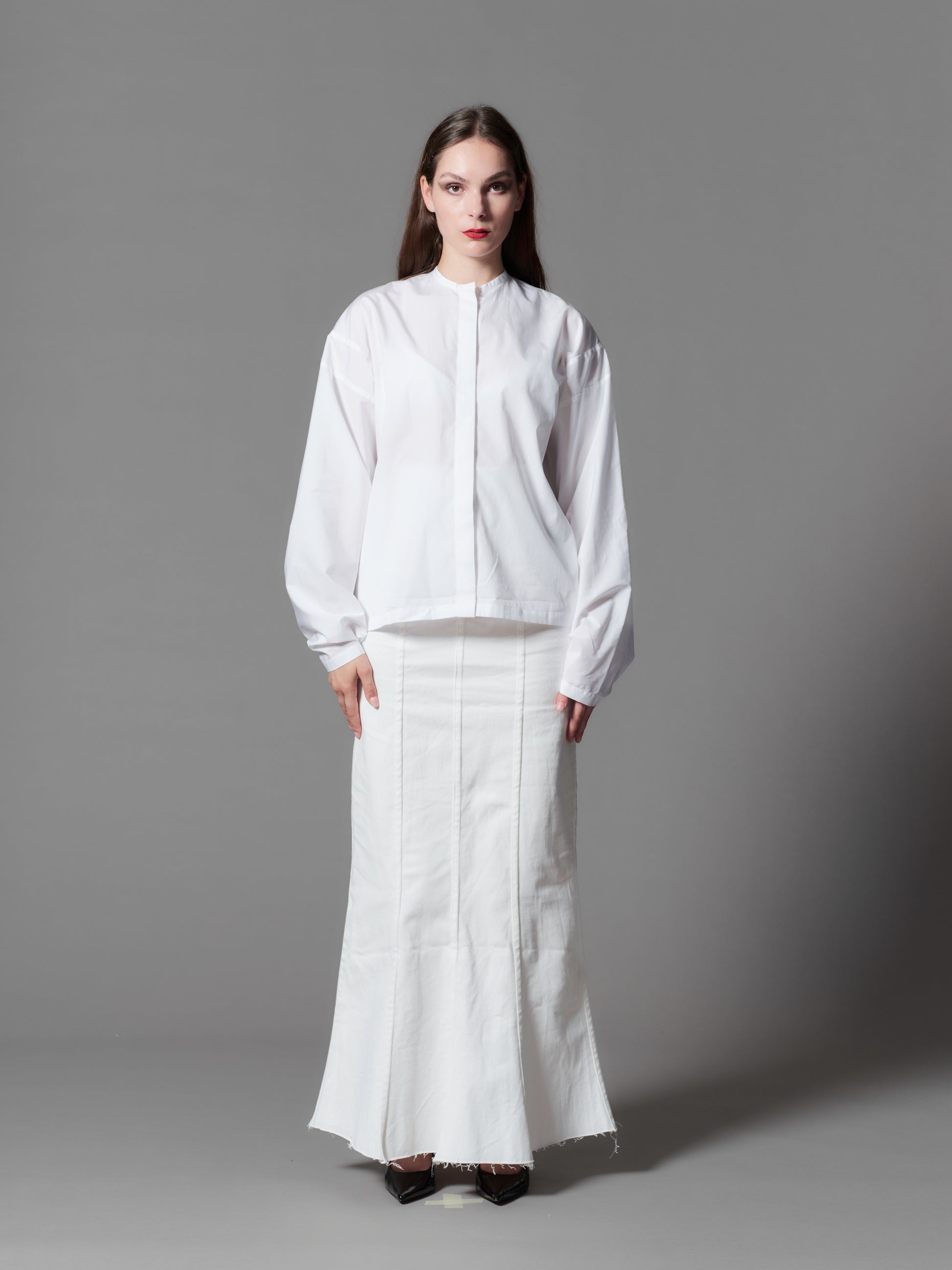 Pure white oversized blouse made from finest Swiss Alumo cotton.