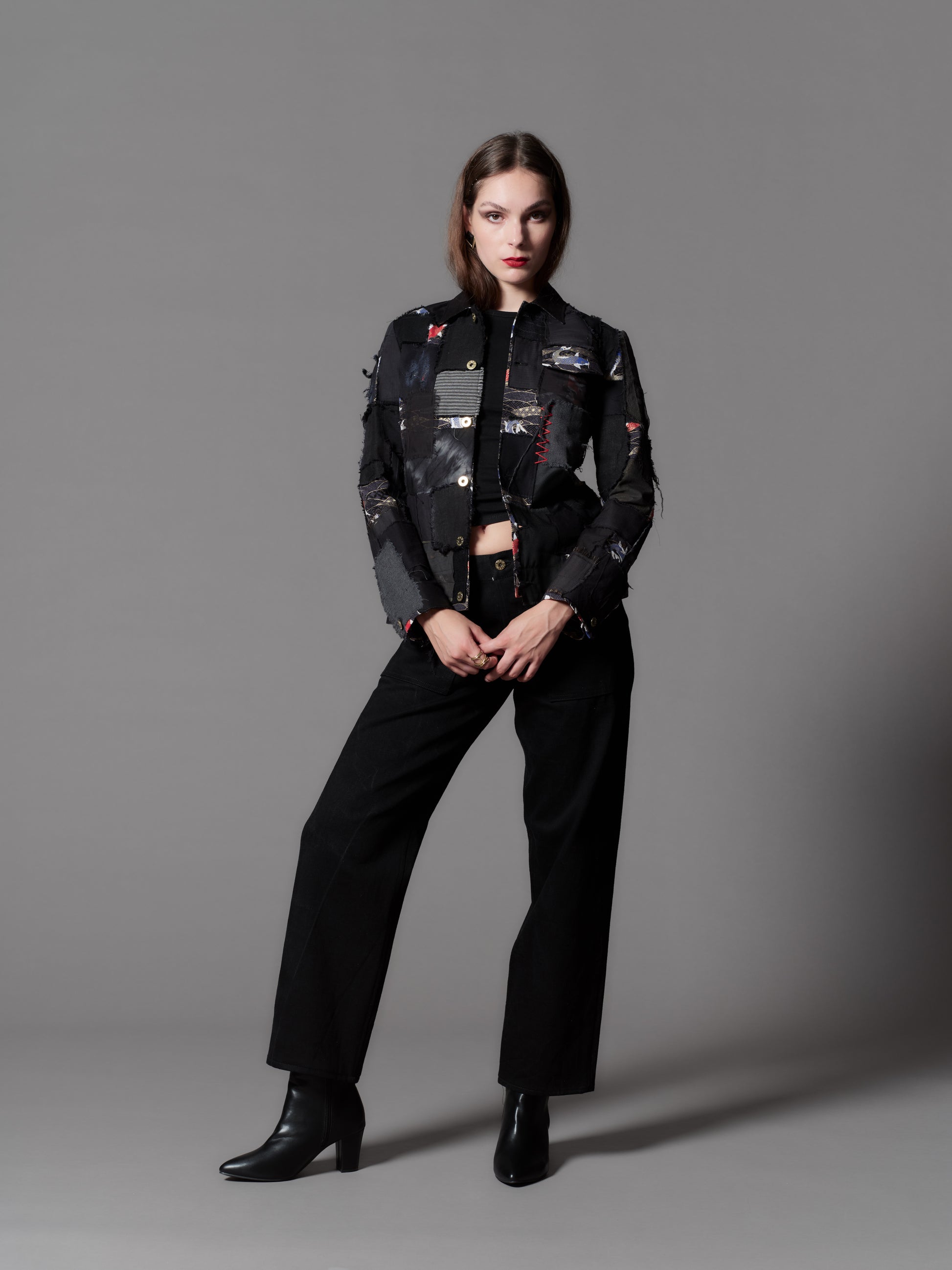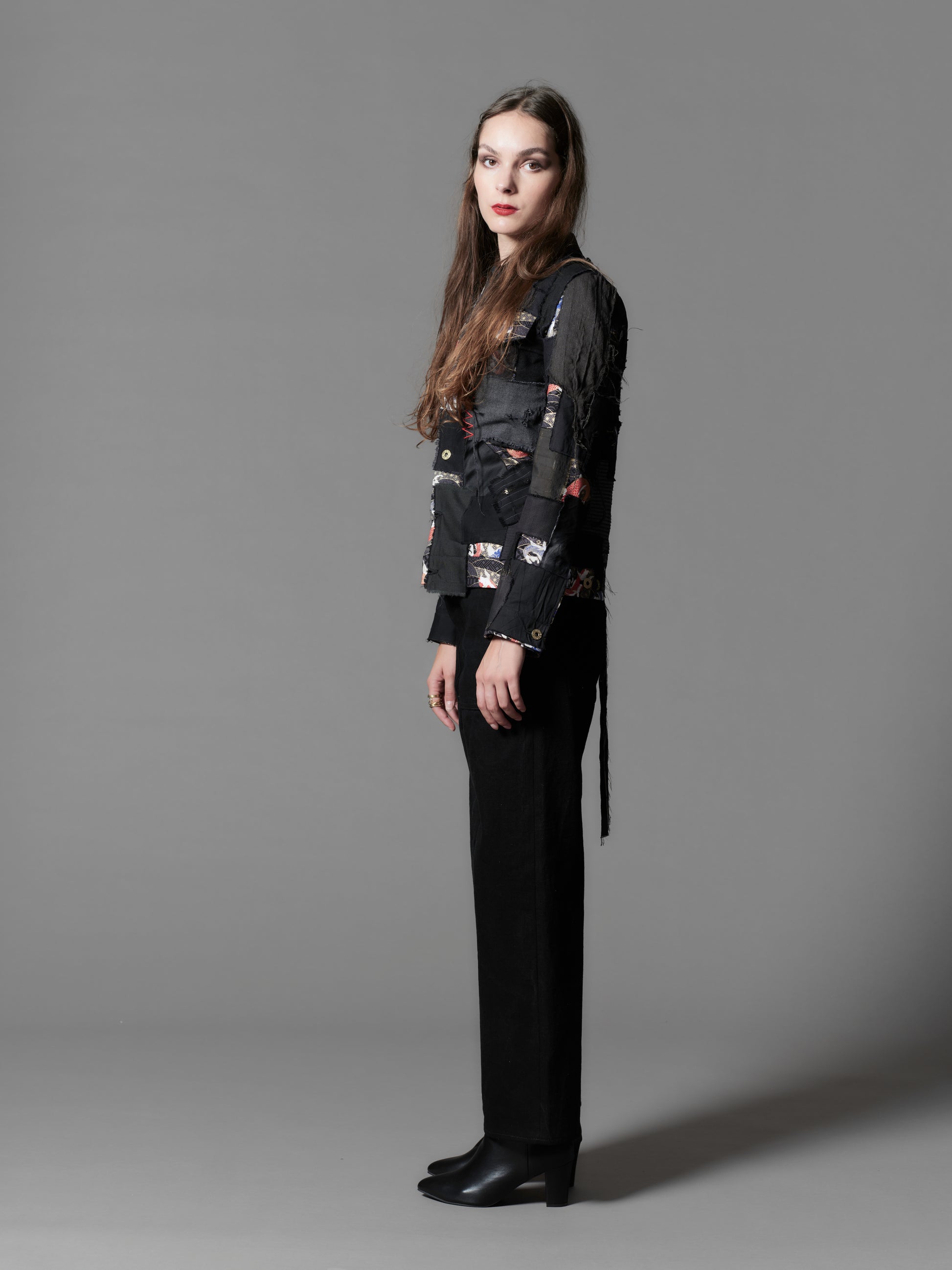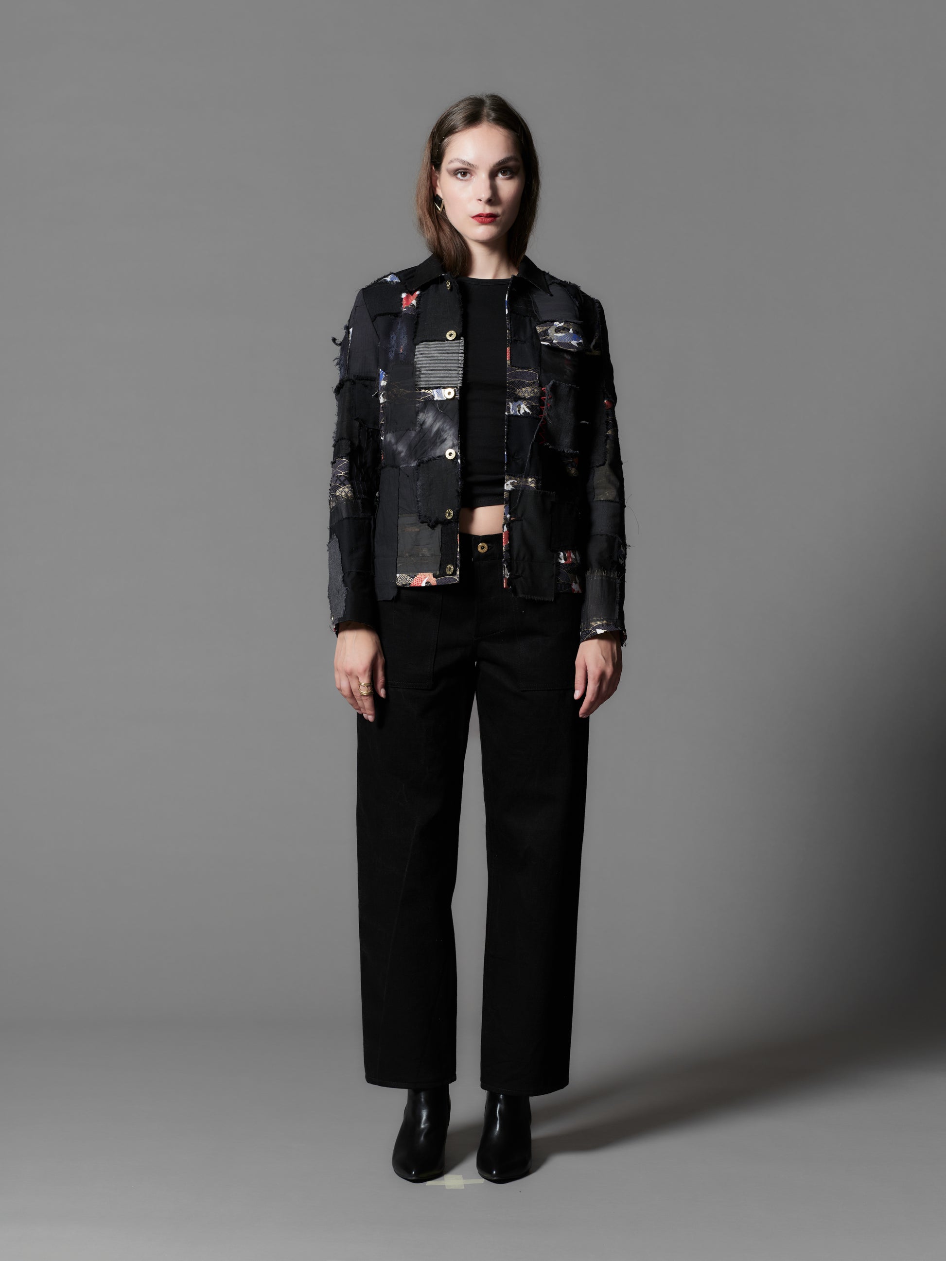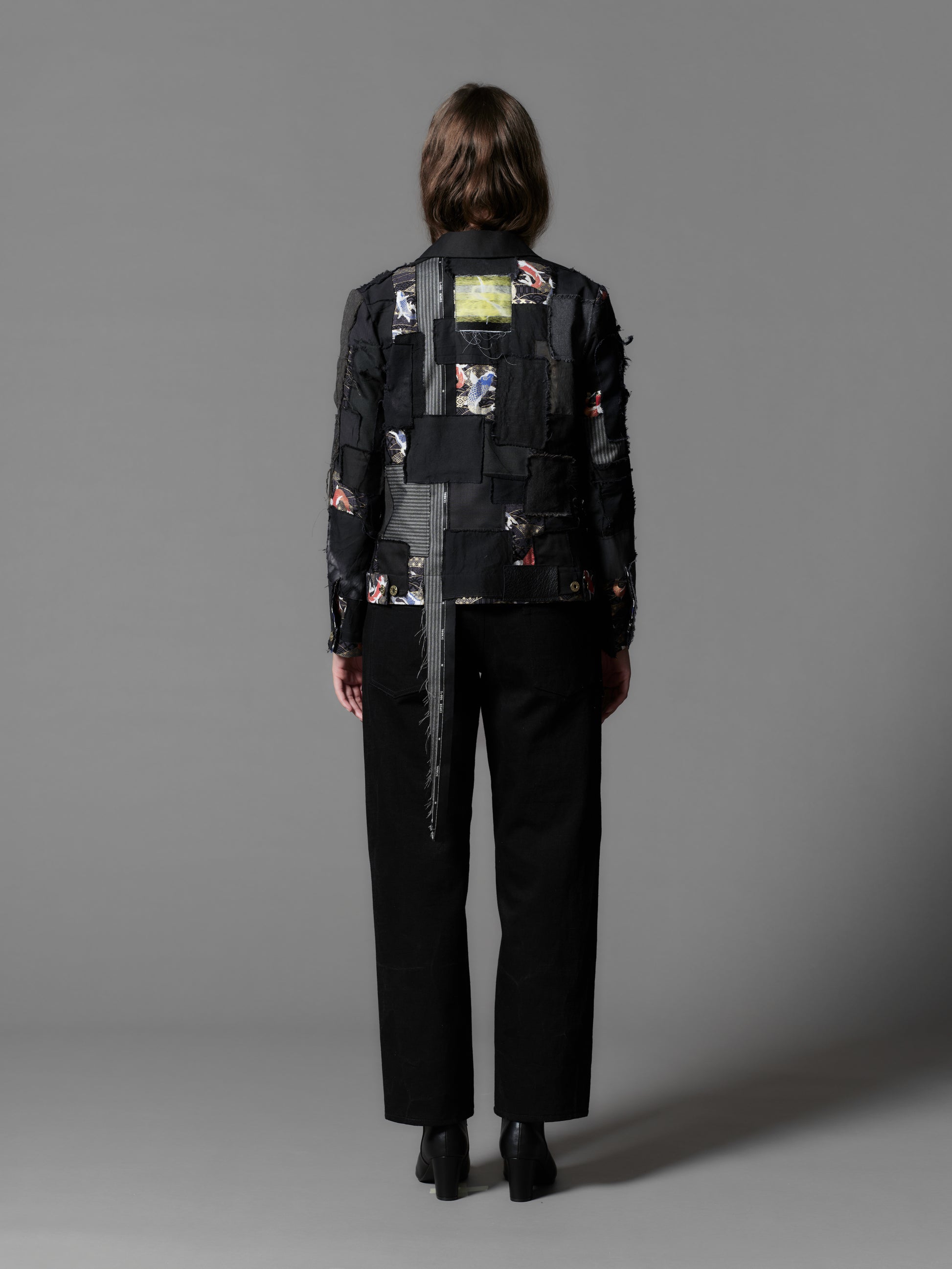 One of a kind puzzle jacket made of different cotton, wool, linen and silk fabrics.